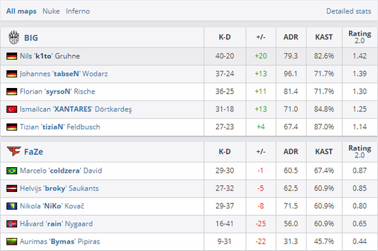 BIG 2-0 FaZe(Nuke 16-9;Inferno 16-5;Dust2)