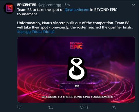 Na'Vi在震中杯联赛中被分到了A组,同组的对手有Nigma、OG、Secret等队。震中杯赛事方也宣布了他们的替代者——B8战队。