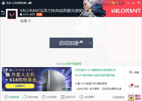 《Valorant》已经上线了一段时间,身披拳头FPS新游光环的《Valorant》并没有让玩家们失望,因为游戏没有上线国服,所以之前有很多的玩家已经通过使用迅游加速器加速之后抢先体验了港服等区服。现在台服即将上线,迅游和大家一起来看看关于台服的上线时间。