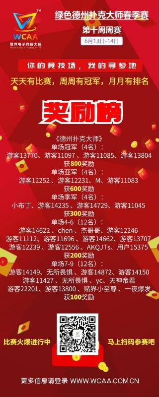 “绿色德扑大师春季赛”和“WCAA2020斗地主春季赛”即将开启第十一周周赛的比拼了,而“绿色德扑大师春季赛”在之前的比拼中产生了40名周冠军选手,这40名选手不仅获得了800元的奖励同时还获得了晋级总决赛的资格。绿色德扑大师春季赛总决赛总奖池高达300万,这在国内已经达到一线大赛的奖池水平,这也是这些晋级选手们的最终目标。
