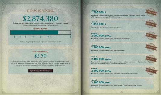 2013年第一本TI小绿本发布,售价$9.99,每一本的2.5刀会加入奖池,一个账号限购一本的情况一举售出近50万份,为TI3的奖金池积攒了120万美元。