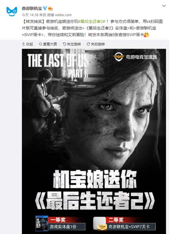 顽皮狗《最后的生还者2》2020年6月19日在PS4平台解锁,是人气游戏《美国mo日》的最新续作,除IGN日本和Gamespot等极少数媒体之外,大部分媒体都给出了不低于9.5分的超高评价,且其中多数直接给到满分。本作不太像游戏,更像是一部美剧,在故事的叙述方面运用了大量电视剧和电影的手法,故事在进行过程当中埋下了大量悬念,而在每个剧情的间断部分,还利用了插叙和倒叙的手法补充故事的剧情,去引导玩家沉浸在故事的发展里。大家如果对游戏感到好奇,又对468元港币的价格望而却步,那么可以考虑奇游联机宝推出的抽奖活动: