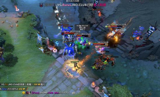 23分钟,VG抓死两名酱油,并推掉了中路高地,回头打盾。EHOME孤注一掷出击,然而没有BKB的虚空被A杖紫猫连续沉默暴毙,EHOME自知翻盘无望打出GG。