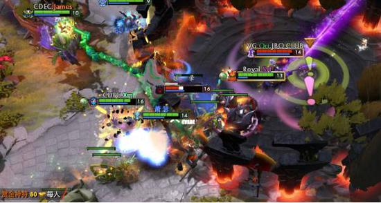 决胜局,轮到VG玩TB了——胜负自然是一目了然。言归正传,VG之所以能赢的比较轻松,除了TB这个英雄本身的特性外,双酱油在前中期的游走也功不可没。操刀Pom的Pyw三路拿人头,玩毒狗的Dy也找到过几次不错的机会。十分钟经济领先三千块,VG超胜利大踏步前进。三分钟后,皮鞋的牛头在也去看到了打野的猴子——直接跳大,AME瞬间蒸发!15分钟,尚未成型的TA和猴子提前参战。但因为伤害太低,CDEC未能击杀VG的任何一名英雄!