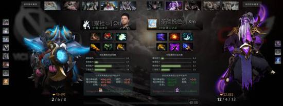 7.27的大热后期是TB——在与CDEC的首局比赛中,VG在第二手毫不犹豫地选出了这个英雄。另一边,CDEC给出的回应是在理论上克制TB的宙斯。对线期,双方在边路基本上是和平发育。五分钟不到的时候,操刀TA的Ori冲塔杀宙斯不成反遭反杀,这个意料之外的一血让XM经济起飞。不过在三分钟后,和酱油一起排陷阱的宙斯却遭到了玛尔斯的伏击。皮鞋对着XM直接交出热血竞技场,Ori打出致命爆发,宙斯阵亡。