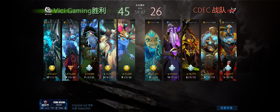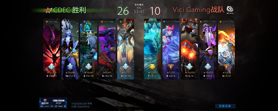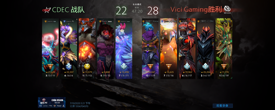 随着VG敌法师、龙骑的逐渐成型,CDEC经典的“关箭组合”团战中略显吃力而被VG几度逼高,最终后期疲乏的CDEC不敌VG的双核成型再负一局。