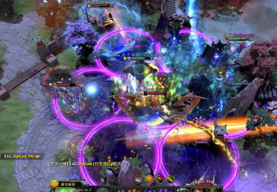 虚空带盾,茶队不敢盲目接团。一直避到26分钟,茶队才在下半片野区展开反击。这一次,凤凰和虚空的大招位置比较一般,TB开启变身疯狂输出,虚空光速掉盾。第二时间,谜团大招命中紫猫和海民,女王大招给力,SAG惨遭团灭!经济差回到了四千块,就在茶队即将翻盘的时候,剧情却再度翻转——30分钟的上路团战,茶队把几个大招都用在了紫猫的身上!虚空见状感到机会已经来临,链子哥先是单杀牛头,然后一个大招罩住女王。萨尔无限留人,虚空见谁敲谁。回合制游戏,茶队在自己的半场一共损失了四名英雄!