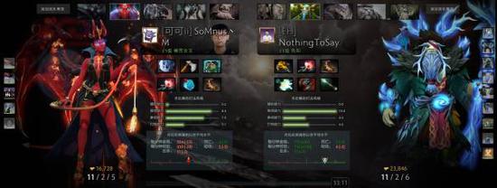 首局比赛,LGD的阵容略显常规——Maybe的女王、查理斯的幽鬼、老11的玛尔斯,酱油分别是Fy的牛头和Xnova的双头龙。不过在出装选择上,LGD却是花样百出——幽鬼出的是分身冰眼,女王是分身强袭,玛尔斯则是跳刀陨星锤。另一边,EHOME拿出了赛老师的德鲁伊和NTS的先知,再加上Y队的大树,三个“自然系”英雄可谓是攻守兼备。其他两个位置分别是Faith_bian的滚滚和XinQ的海民。对线期,Maybe在中路抓住机会单杀了先知,可是在下路,双头龙也成为了EHOME的突破口。对线期结束的时候,LGD人头领先三个,经济领先一千。