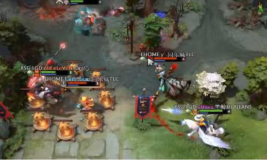 40分钟,LGD大意失荆州——在对面的野区出口被炸弹人炸翻了!玛尔斯和海民瞬间毙命,EHOME的还在残局搞定了光法,比赛再次陷入僵局。42分钟,冲动的LGD在EHOME的下路二塔出现失误。老11先手被杀,发条买活后,火猫连死两次。嗅到了反击的味道,EHOME的动作大胆了起来!45分钟,EHOME在自家野区依靠剑圣的完美无敌斩秒了小娜迦。混乱中,炸弹人和紫猫的魔法输出全部拉满。一换五,LGD团灭!这个阶段,双方的战斗力已经不在一个档次。