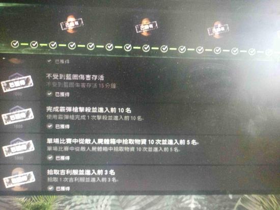 至于[不受地图伤害]、[用霰弹枪完成击杀并进入并10]或是要求吉利服和物资则推荐单排卡拉金,重点就是要苟住,至于物资则是看大多看脸。