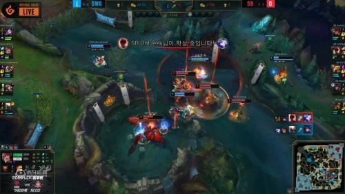 第二局双方中后期团战阵容一决高下,DWG凯南配合飞机寒冰,而SB沙皇厄斐琉斯后期无敌双C。开局双方野辅前后脚游走中路各取一个人头握手言和,但DWG凭借Nuguri凯南一波逆天单杀再加火龙团TP完美进场打出0换3拿下前期领先。节奏起飞的DWG不断掠夺地图资源和推塔扩大领先,逐渐落入下风的沙盒想要阻止对手拿下大龙,可惜又是Nuguri大招留人配合ShowMaker飞机爆炸输出,团灭加大龙后DWG拿下本场比赛胜利。