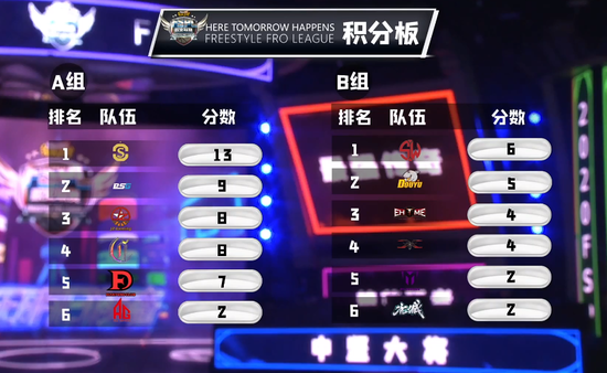 FSPL职业A组首日比赛中出现了两场让2追3的翻盘,彩虹战队先是被翻盘再是翻盘,非常具有戏剧性。积分榜上AG惨遭4连败,已经无缘晋级胜者组,Onestar继续保持连胜未失一局11分领跑积分榜,PSG战队7分紧随其后,巅峰战队、极致战队、彩虹战队其中一支战队将进入败者组。