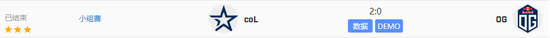 图一Nuke,双方都在防守方展现了自己的实力,上半场coL率先守下11分,然而下半场OG换边之后疯狂追分,可惜最终局出现失误,经典白忙活,14-16告负图一。来到Mirage,进攻方难以打开局面的coL始终处于落后,然而OG也一直未能将比分拉开,到了下半场coL在poizon的带领下稳固防线稳扎稳打顺利16-13拿下比赛。