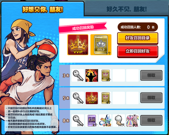 战友召回第2季正式开启,只能召回已经绑定手机并且离线90天以上且一起组队进行过比赛的好友,被召回的好友上线后完成一场比赛后才算成功召回,每天最多能召回5位好友。