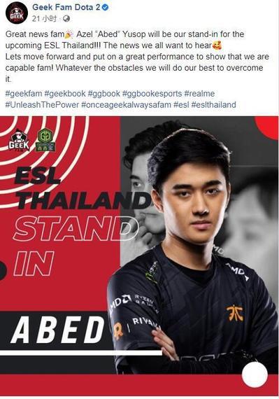 此外,之前由于Raven离队,Abed将代表Geek Fam替补出战1号位。