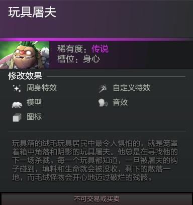 来自玩具箱的深处,骇人的玩物加入了战场。所有勇士令状达到255级的玩家都可以领取全新的帕吉身心——玩具屠夫,具有全新模型、动作、配音、改变英雄的图标和自定义特效。