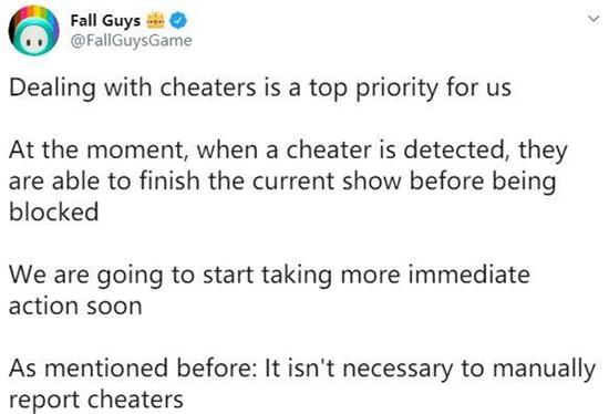 随着游戏玩家的逐渐增多,游戏中出现了外挂现象。但是《糖豆人》官方为了确保公平的游戏环境,游戏官方近日在推特发文表示,针对游戏里的外挂和作弊行为,将不断优化检测效率,并将采取更多的行动。而在上周,游戏官方就已推出 “神仙服”,将游戏里存在作弊行为的玩家集中在一个服务器里,任其 “大显神通、神仙打架”,相信整顿之后大家会很快迎来一个更加良好的游戏环境。