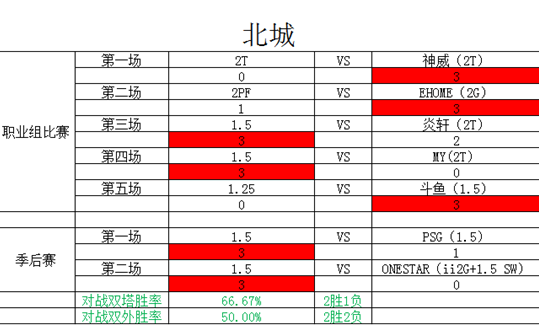 仔细研究数据就会发现,北城在改打1.5阵容后4胜1负,胜率80%,效果奇好。不过唯一输掉的比赛就是输给了斗鱼战队,在职业联赛总决赛时第一场就要面对斗鱼战队,可谓凶多吉少,小编觉得北城能战胜斗鱼战队的概率不足一成。所以综合分析,北城战队前期状态低迷,变阵后三人找到了比赛节奏和自信,而且近期战绩很好,但是用1.5阵容应对斗鱼战队能取胜的概率微乎其微,即使临时变阵改打2T也难和斗鱼战队相抗衡。