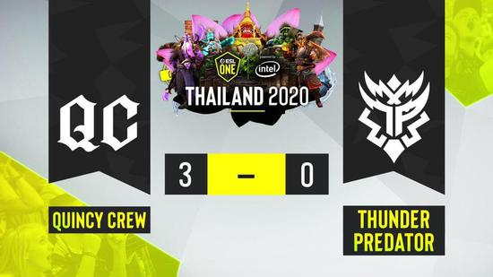 8月31日,ESL One泰国站美洲赛区决赛,Quincy Crew以3:0的比分击败了Thunder Predator夺得了冠军。