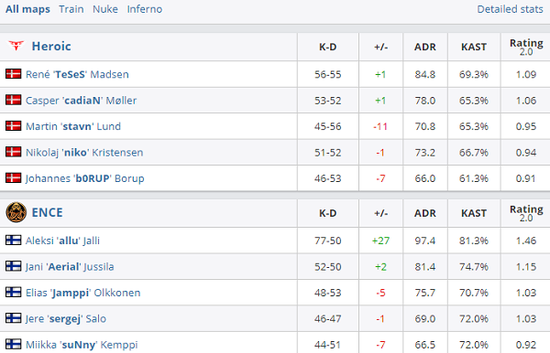 ENCE 2-1 Heroic(Train 9-16;Nuke 16-5;Infenro 16-13)