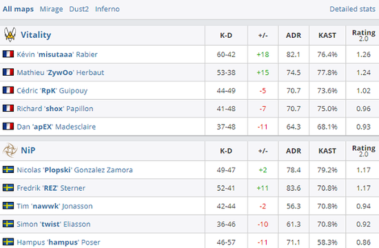 Vitality 2-1 NIP(Mirage 7-16;Dust2 16-5;Infenro 16-12)