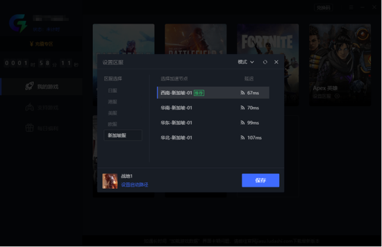 免选区服和节点并不意味着你无法与好友共同组队游戏,为了方便组队游戏玩家,我们在每个游戏的加速选项中预备了一键加速和自定义区服的设置。实时监测每个线路的延迟信息,智能推荐延迟最低的线路,便于玩家选择最适合自己的那条加速线路。