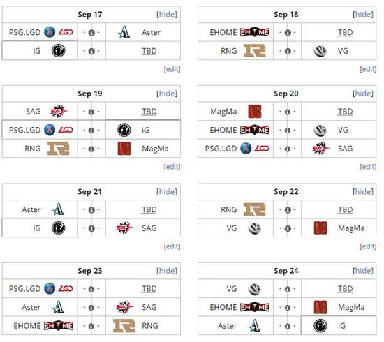 海选赛首日比赛皆为BO1,15日将为BO3对决!目前海选赛正在如火如荼的开展,两支晋级战队将与PSG.LGD、EHOME、VG、RNG、IG、ASTER、SAG、Team MagMa展开厮杀,角逐晋级线下赛的资格!