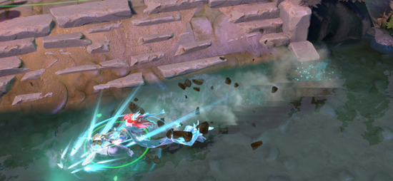 同样广受好评的还有风行者至宝。风行者的至宝清风环佩更改了英雄使用特定装备时的动作,例如使用原力法杖就变成了滑铲。使用EUL的神圣法杖时,风行者就直接化身成了御风者,站在了旋风上。