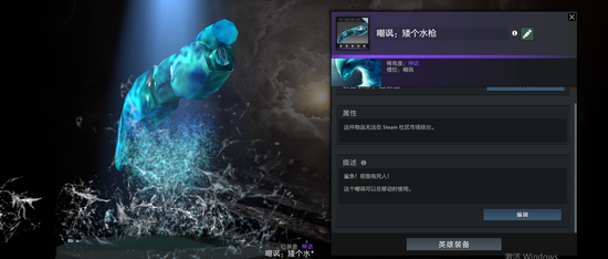 再看变体精灵的这款嘲讽饰品,在击杀了对方的英雄以后化身成一把水枪,仿佛在致敬TI4决赛上Mu的经典开枪动作,嘲讽对手:你已经是我的囊中之物,受死吧!嘭~