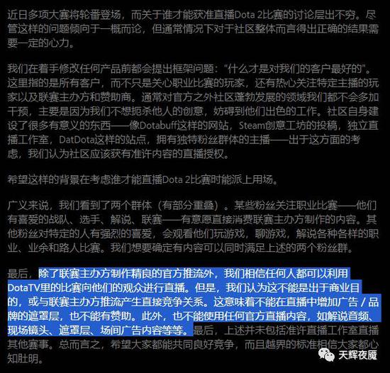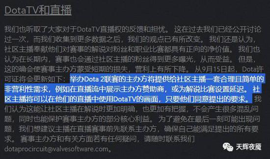 综合这3个公告,大家不难看出,V社对于支持社区主播利用DotaTV的内容进行非商业直播这件事已经是板上钉钉、覆水难收了。