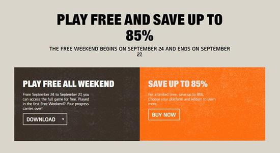 本次《全境封锁2》开启免费周末的时间为9月24日到9月28日,在此期间各位玩家可以前往育碧商店免费下载游戏试玩。并且除了《全境封锁2》免费试玩之外,还开启了大幅折扣优惠。在周末免费活动期间,购买《全境封锁2》最多可优惠85%,PC端的玩家可以前往Epic商城购买。