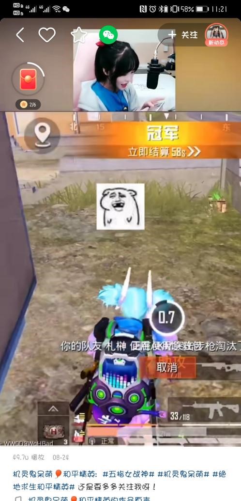 呆萌,又名机灵鬼呆萌,自称是“一个神经兮兮的女孩子”,实际是一名武汉萌妹子,如今在快手坐拥近650万粉丝。看过呆萌直播的朋友们应该都知道,直播间里的呆萌人如其名,走的是搞怪爆笑路线,看她的直播既养眼、又欢乐。同时,呆萌也是一名技术流女主播。她在吃鸡类游戏中4倍镜单点相当精准,近距离压枪扫射也是非常专业地使用侧身压枪,实力相当不俗。另外特别值得一提的是,呆萌还是一个有爱心的善良女孩子。她养了两只猫,其中一只是领养的。最开始这只小猫跳蚤、耳螨的情况很严重,还有贫血,是呆萌带着它看病问医,给了小猫咪新的生活。
