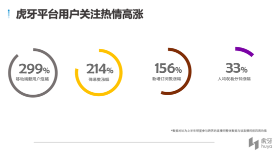 报告显示,通过对比明星参与跨界的直播间整体数据与直播间均值发现,明星直播期间移动端新用户、弹幕数、新增订阅数、人均观看分钟的涨幅分别为299%、214%、156%和33%。