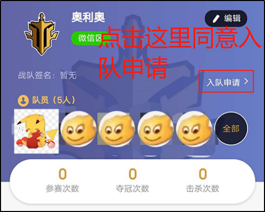 3)组建队伍之后可以在“我的”界面中选择“我的队伍”,进入之后分享给你的队员,他就可以通过链接进入你的战队了!注意一下,队员入队是需要队长的同意的。
