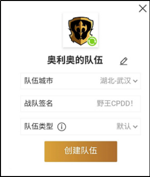 2)在队伍界面点击创建队伍,填写队伍名称、城市及签名,队伍类型选择默认即可。