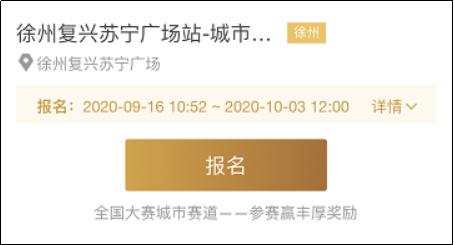 登录王者人生app,报名页选择徐州复兴苏宁广场站进行报名,认证后即可参赛。