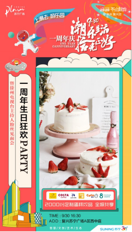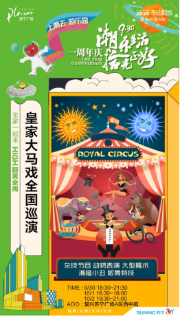 9.30-10.8徐州复兴苏宁广场一周年庆,潮玩9天9夜。9.30-10.2皇家大马戏在广场精彩开演,9月30日2000份定制蛋糕全城共享,10月1日新潮美食品鉴会邀全城尽享饕餮盛宴,10月2日S1机甲战车赛超燃开战,《白雪公主》经典儿童剧寻梦童年,10月3-4日超燃电竞火力全开!邀请王者峡谷“征战”多年的你,共赴一场王者竞技!感受排位和巅峰赛之外的第三竞技场,共同体验电竞社交的快感!
