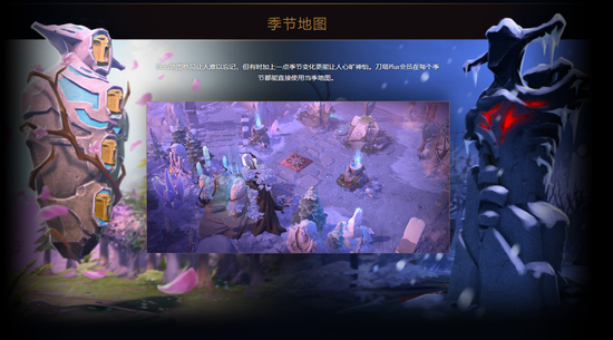 随着季节更替,刀塔Plus都贴心为您准备了当季的地图。无论是凛冽的寒冬,亦或是温暖的春日,刀塔Plus季节地图都能够令您感受到不一样的DOTA2世界。