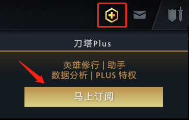 在游戏内右上角点击金色Plus图标,即可立即激活刀塔Plus。