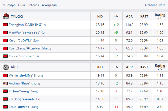 双方在决胜局Overpass中的情况就没有之前那般焦灼,惨遭翻盘的VG或许是还没能从刚刚状态中恢复,多波进攻脱节被TYLOO四处击溃。在TYLOO经济强起局时他们的决策也有所失误,随着DANK1NG等人手感渐起双方在半场比分彻底拉开。换边后由于双方分差过大,TYLOO几波协同直接锁定了最终胜局,成功让一追二率先晋级决赛。