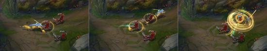 再来说到亚索被称为快乐风男的关键——E技能,相比于原本淡蓝色的环形指示器,金色指示器在视觉效果上更加显眼,尤其是EQ效果更为华丽。而R技能狂风绝息斩在金色的基础上还增加了少部分绿色的颗粒特效,多了一分跳跃感。另外,亚索在每一次攻击时,还会出现与他DJ身份相符的音符特效,各种微小的细节都使得本次至臻亚索皮肤在使用时更具观赏性。