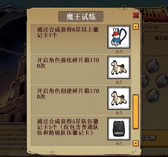 魔王试炼规则:魔王试炼开启需收集7个魔王碎片,魔王碎片可以通过不同任务获得。集齐7个魔王碎片后可以开启魔王试炼。本次魔王试炼倒计时延长至336小时,集齐碎片后可随时开始进行。