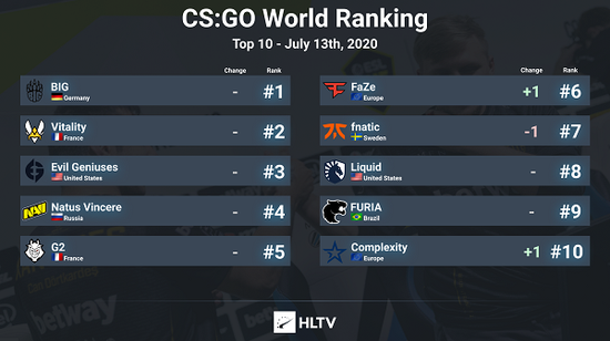 自2016年11月21日进入榜单前十以来,A队在近3.5年的时间里一直处于巅峰之势,这次跌出榜单也是对他们来说一个巨大的打击,2020年他们仅赢得了一个赛事——ESL One通往里约之路。
