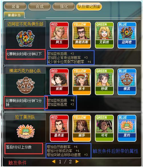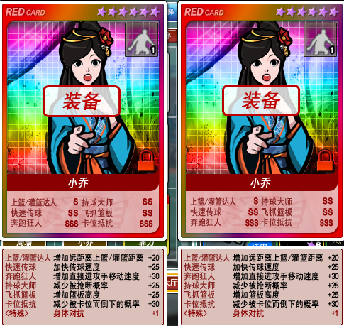 强力灌篮(不需要):出字,增加灌篮进球率,因对抗命中降低时易出