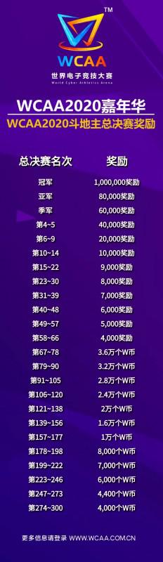 本次WCAA2020斗地主总决赛奖金池共计200万元,其中总决赛冠军奖独得100万奖励!前66名均有现金奖励,而67-300名也将获得“W币“奖励。如果日赛奖励不够吸引你的话,那么总决赛的100万冠军奖金对于所有参赛玩家来说应该都是一份意外惊喜!