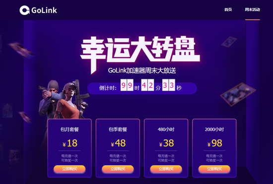 GoLink加速器所有的老用户都可直接拥有1次抽奖机会,充值会员即可再获得1次抽奖机会,每充值一次均可获得1次机会!