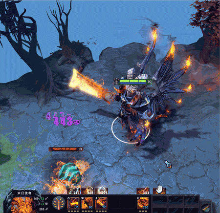 TI5末日EG套烈焰魔将,除了蜡烛翅膀加恶魔羊头辨识度高之外,翅膀上的火焰和黑烟随着末日攻击动作晃动时的效果也很给力,见动图。