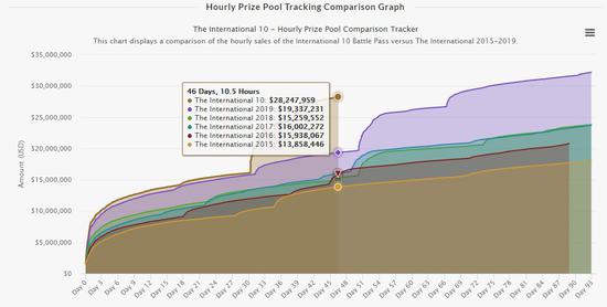 5月26日,第10届DOTA2国际邀请赛勇士令状上线。之后,受益于广大玩家的购买热情,第10届DOTA2国际邀请赛总奖金也是快速上涨。在勇士令状推出第62天后,7月27日,第10届DOTA2国际邀请赛总奖金突破3000万美元大关。作为对比,去年同期TI9总奖金额为1900余万美元,在勇士令状推出74天后,总奖金才达到3000万美元。据此推算,第10届国际邀请赛极有可能打破由TI9创造的电子竞技赛事总奖金记录。
