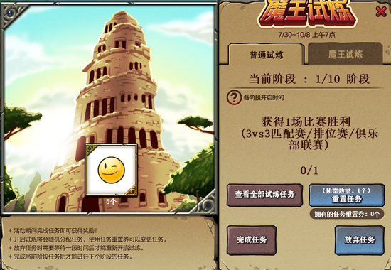 魔王试炼也可以使用“任务重置券”,但消耗较多。