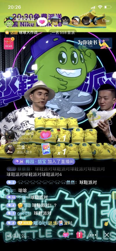 《球球大作战》球鞋派对直播狂欢,海量球鞋免费送!自7月25日开播以来,直播间已相继送出400多双球鞋,总价值超过100万。